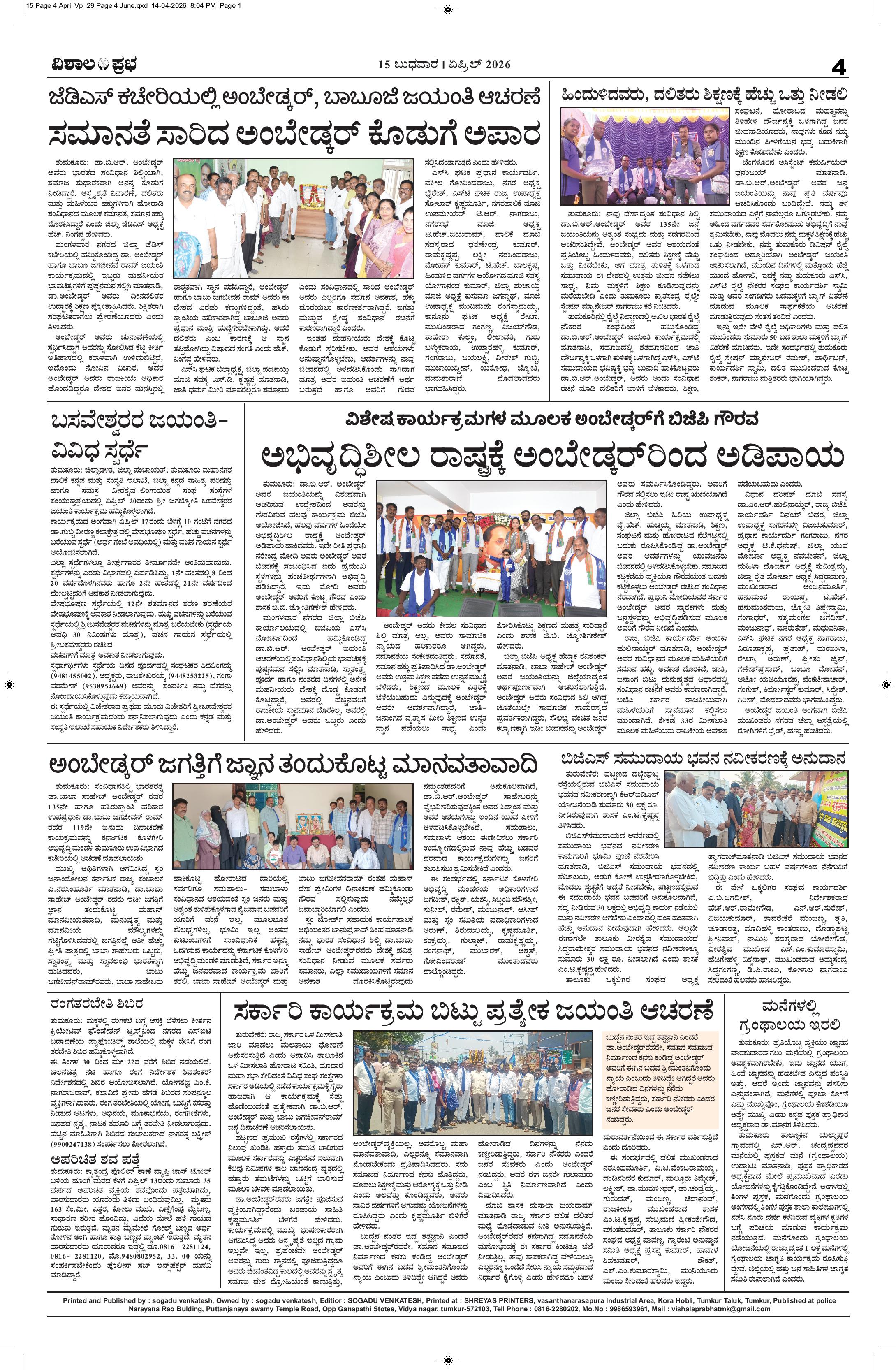 15 APR 2026 VP Page: 4 April 15, 2026 << First << 4 >> Last >> Page 1Page 2Page 3Page 4 × 15 APR 2026 VP 15 April- Vp pdf-page-00115 April- Vp pdf-page-00215 April- Vp pdf-page-00315 April- Vp pdf-page-004 << First << 4 >> Last >> 15 April- Vp pdf-page-00115 April- Vp pdf-page-00215 April- Vp pdf-page-00315 April- Vp pdf-page-004 15 April- Vp pdf-page-004