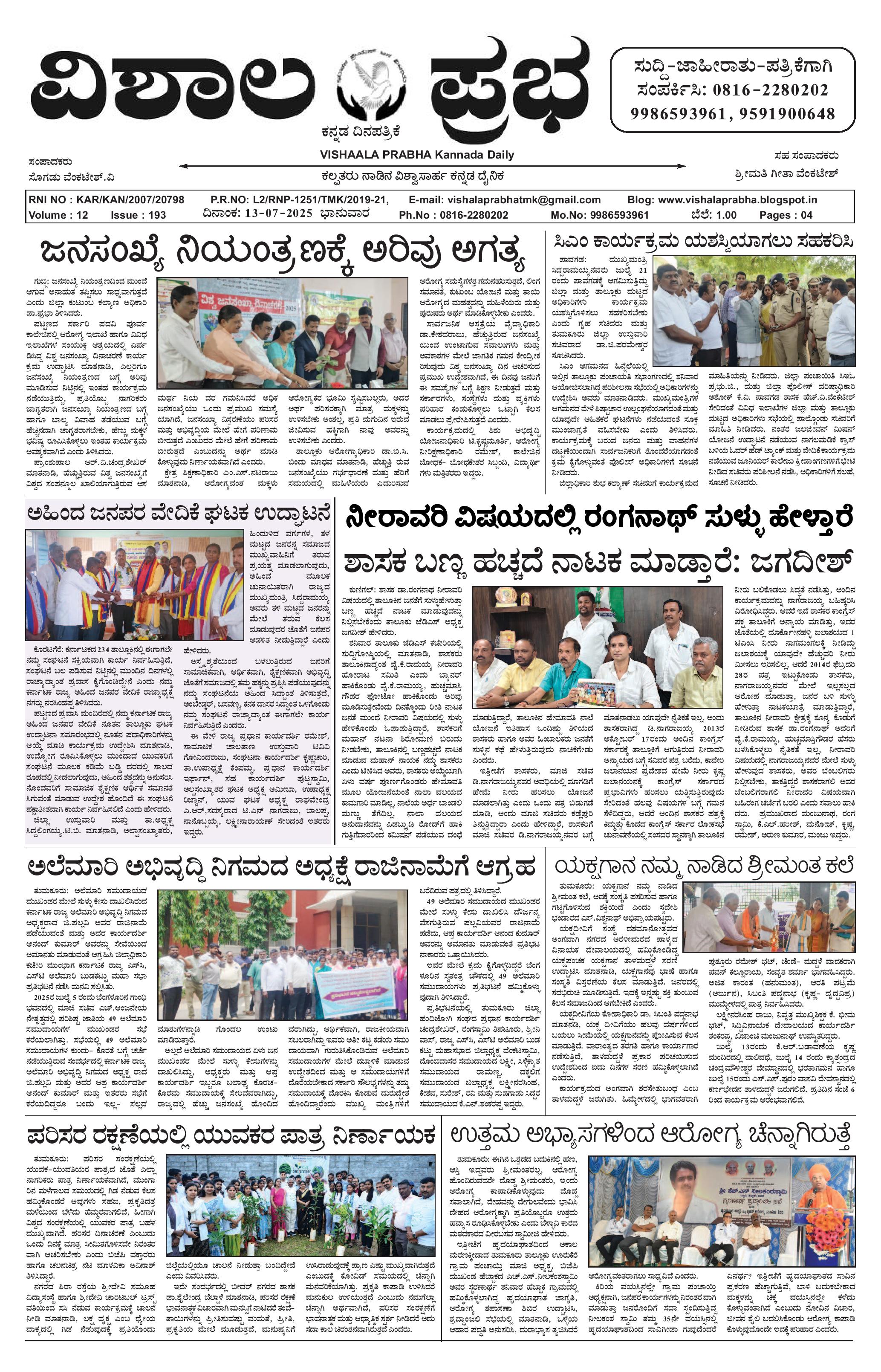 13 ಜುಲೈ 2025 ವಿಶಾಲ ಪ್ರಭ July 13, 2025 << First << 1 >> Last >> Page 1Page 2Page 3Page 4 × 13 ಜುಲೈ 2025 ವಿಶಾಲ ಪ್ರಭ 13 July- Vp pdf-page-00113 July- Vp pdf-page-00213 July- Vp pdf-page-00313 July- Vp pdf-page-004 << First << 1 >> Last >> 13 July- Vp pdf-page-00113 July- Vp pdf-page-00213 July- Vp pdf-page-00313 July- Vp pdf-page-004 13 July- Vp pdf-page-001