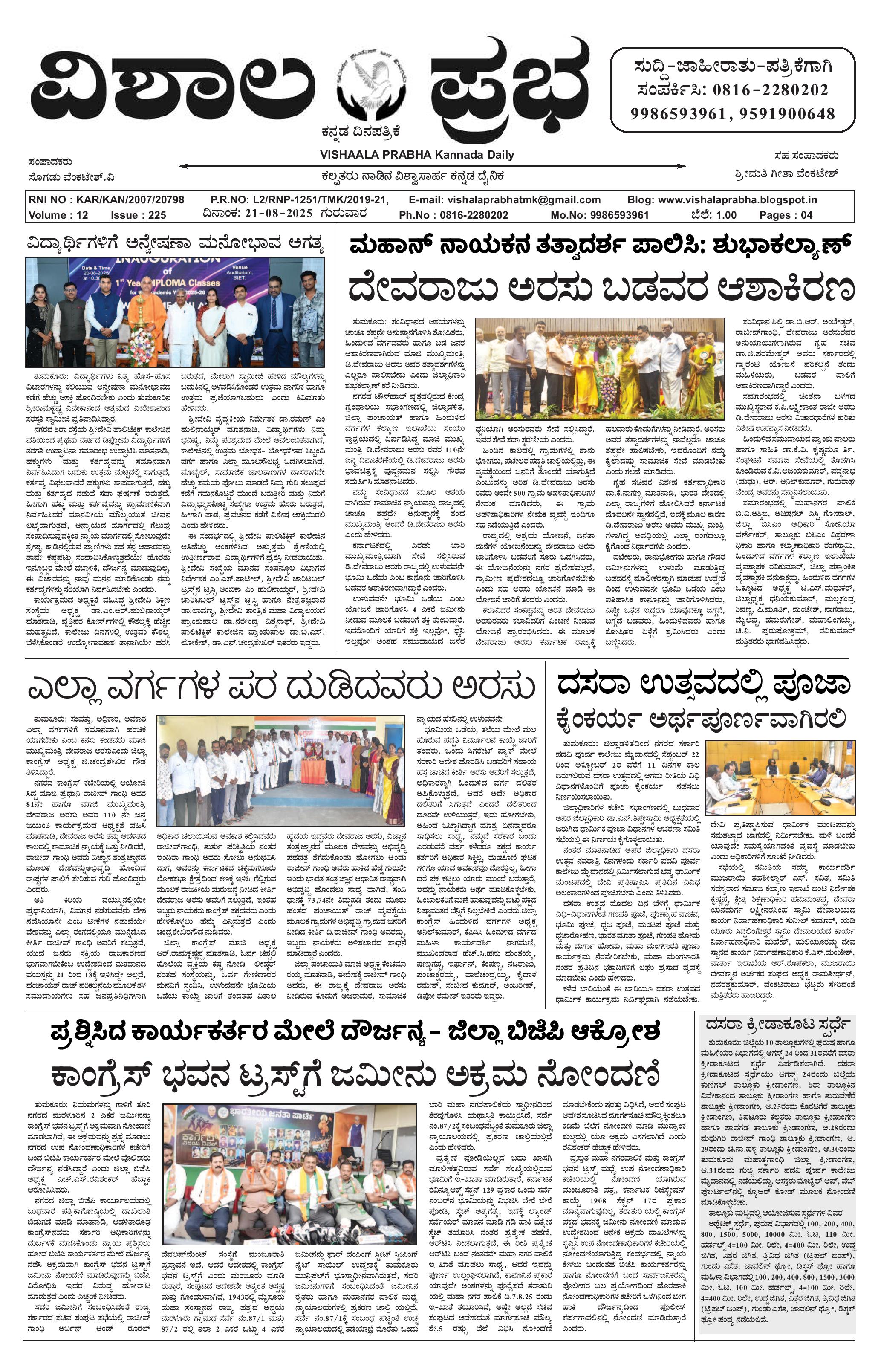 21 ಆಗಸ್ಟ್ 2025 ವಿಶಾಲ ಪ್ರಭ